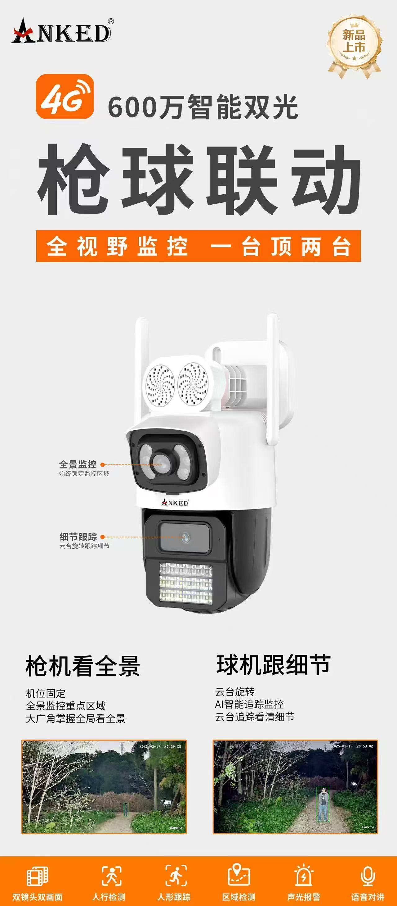 安柯达 DQ16 4G终身免流智能枪球联动警戒球